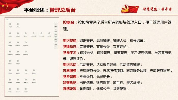 智慧党建云平台是根据长时间党建开发经验,整合诸多单位实际使用需求,最终梳理开发而成的一款智慧党建系统。